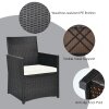 ● Sturdy Construction: Constructed of heavy duty steel frame with powder coated, this outdoor conversation set is rustproof yet sturdy to hold up to 110 lbs for table and 350 lbs for each chair. The weather-resistant PE rattan wraps the frame, which makes it withstand changeable weather. The non-slip foot pads ensure structural stability.
