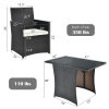 ● 3 PCS Patio Bistro Set: Including a practical coffee table and 2 armchairs, this 3-piece patio dining set creates a comfy area for your morning coffee or dinner time with the one you loved. The convenient coffee table with spacious tabletop allows you to place different items, from magazines and ornaments to drinks and snacks.