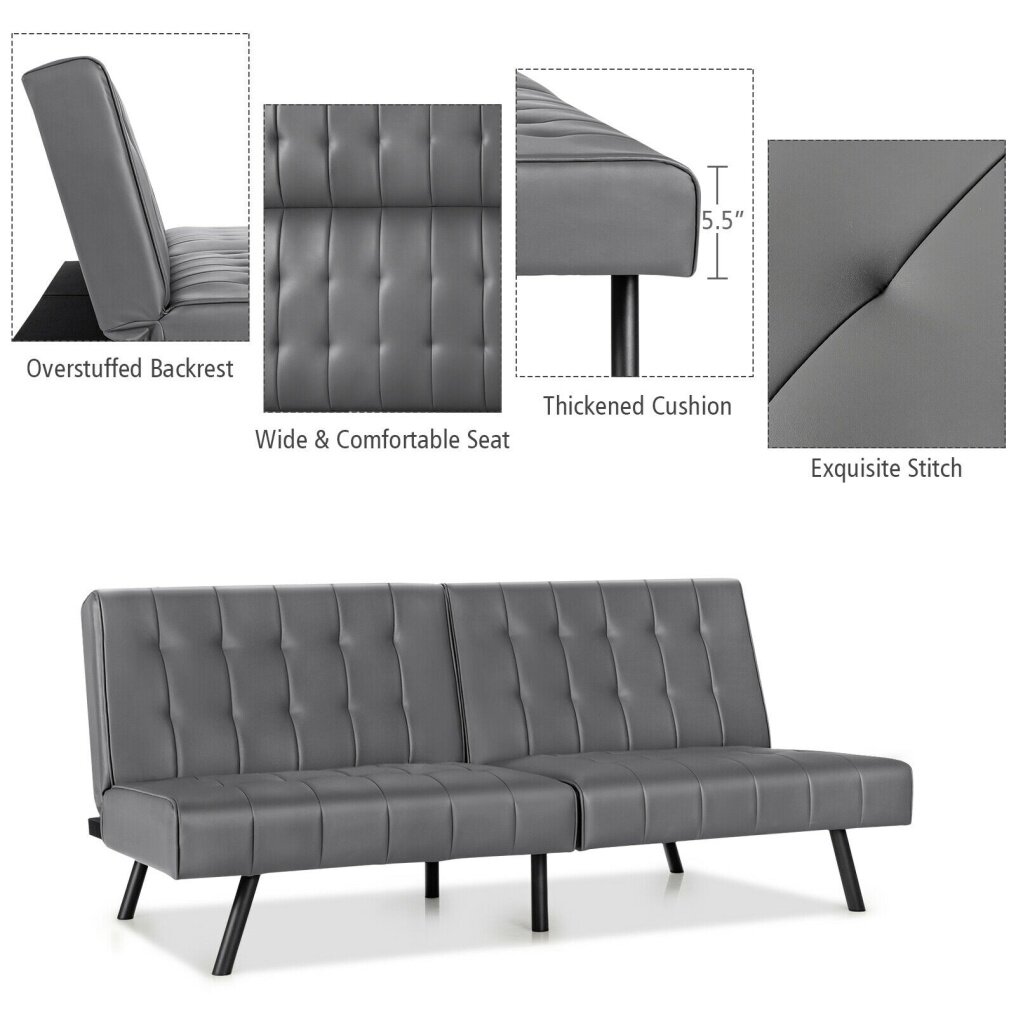 ● PU Surface and Padded Seat: The sofa bed is covered by high-quality PU material, which is smooth and skin-friendly. Filled with high-density and high-elastic sponge, thick seat cushion can offer you soft and comfortable sitting experience, which can fully relieve your fatigue.