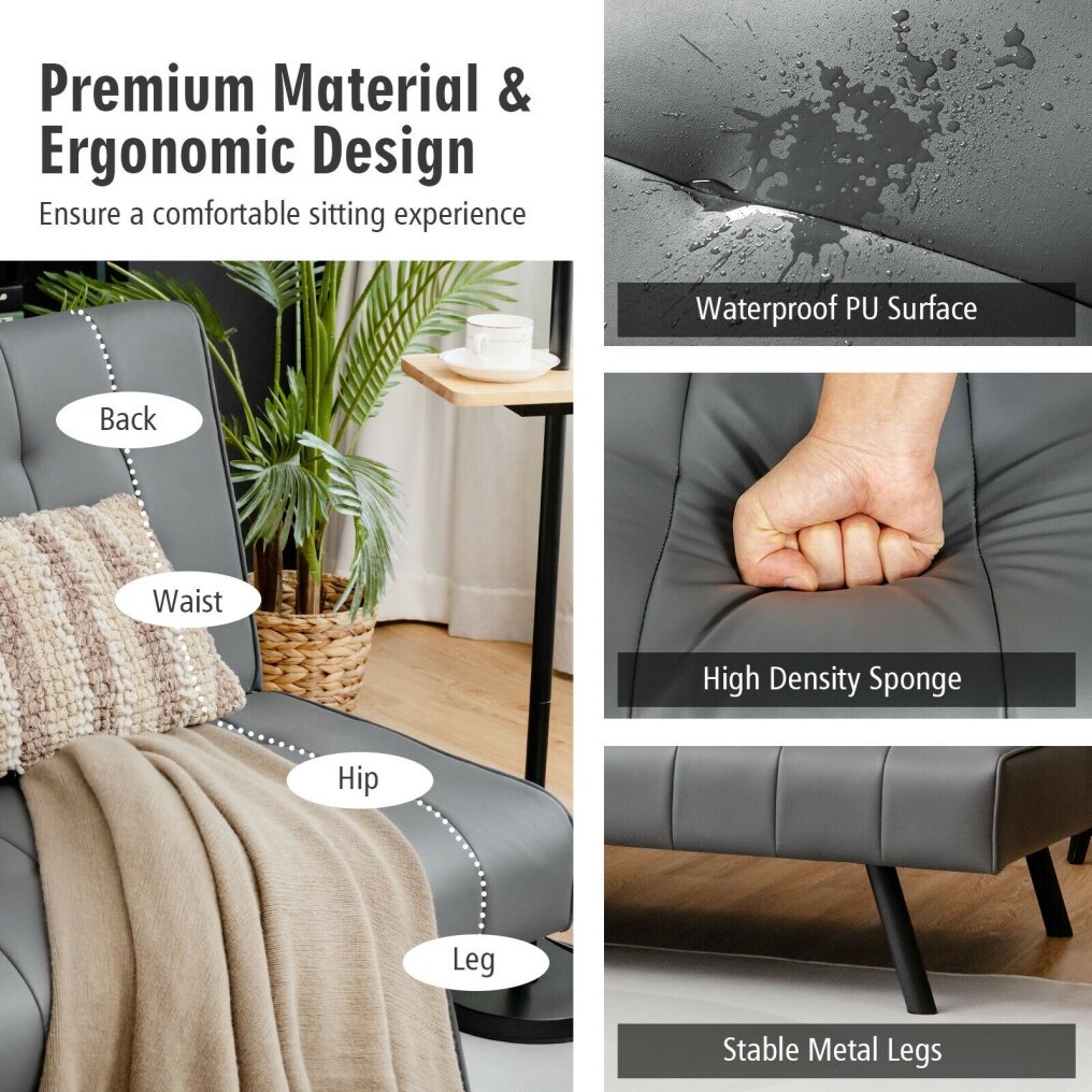 ● Adjustable Backrest Design: Featuring 3-level backrest angles (105, 135 and 180 degree), the PU sofa bed can provide you with a wonderful place to read books, watch TV or sleep for a while. What's more, 2 separate backrests make it easy to separately adjust each of them, allowing the sofa bed to accommodate different people.