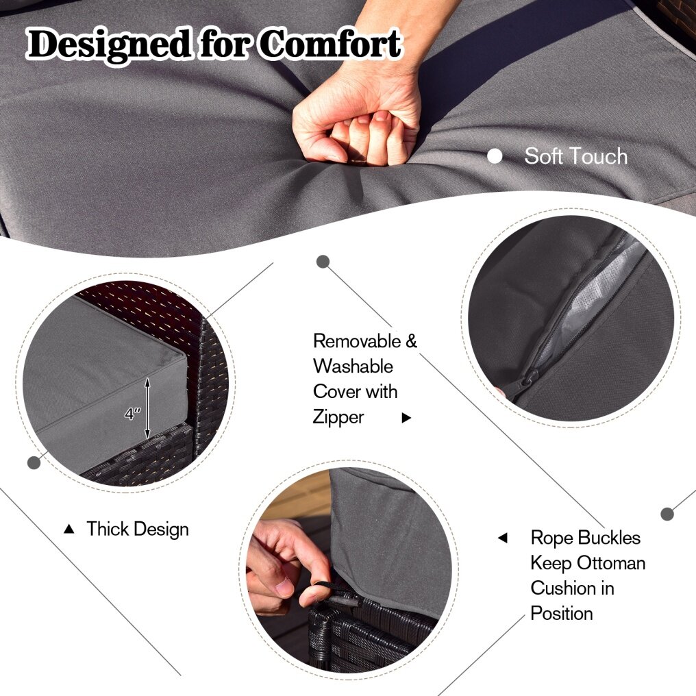 | overall dimension of each ottoman's cushion | 17.5" x 17.5" x 4" (l x w x thickness) |