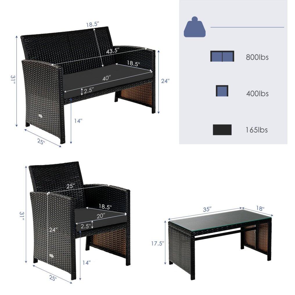 ● Easy to Change Combination: The 4-piece wicker sofa set provides you one loveseat, two single sofas, and one coffee table, which is diverse for you. For instance, you can share the double sofa and chat with your friends to spend leisure time. Also, the spacious single sofa is ideal for you.
