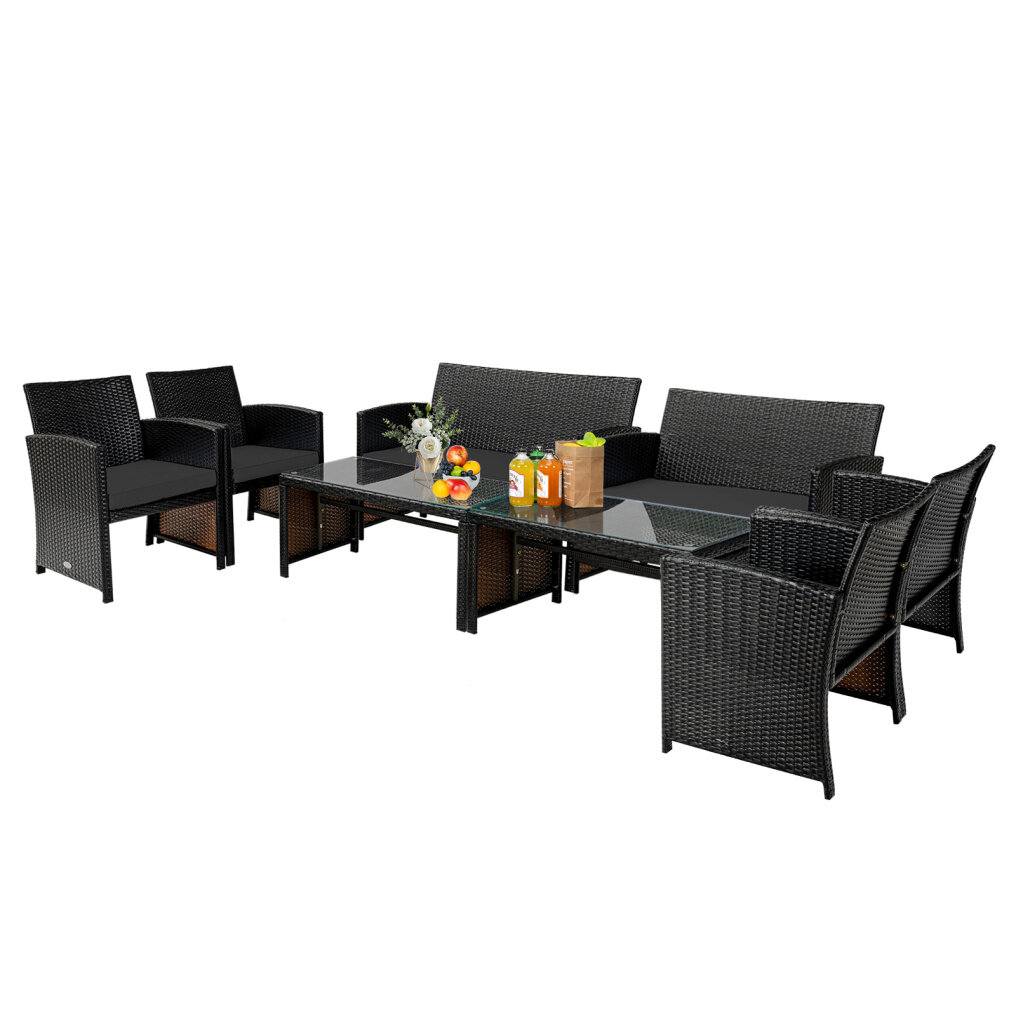 ● Comfortable Seating Experience: Designed with a curved armrest, a wicker sofa can perfectly fit the curve of the human arm. In this way, you can earn a satisfactory seating experience. With non-slip foot pads, the wicker sofa set can be stable on wet ground and you can sit on it without consideration.