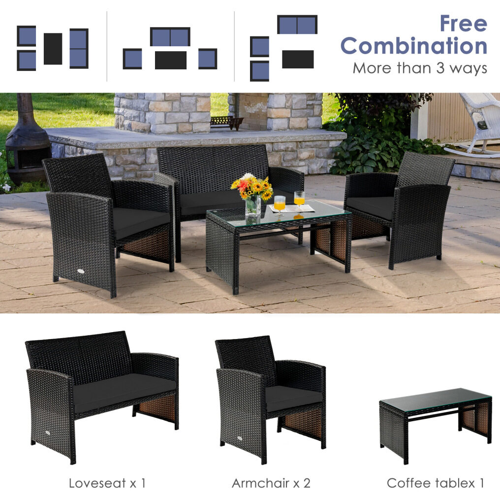 ● Suitable for Indoors and Outdoors: Because of special wicker material, the 4-piece rattan sofa set is suitable to place both indoors and outdoors. When the weather is fine, you can place it in the courtyard and have a good time with your family. You also don’t need to worry about the sofa when drinking.