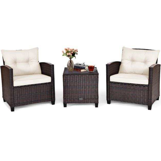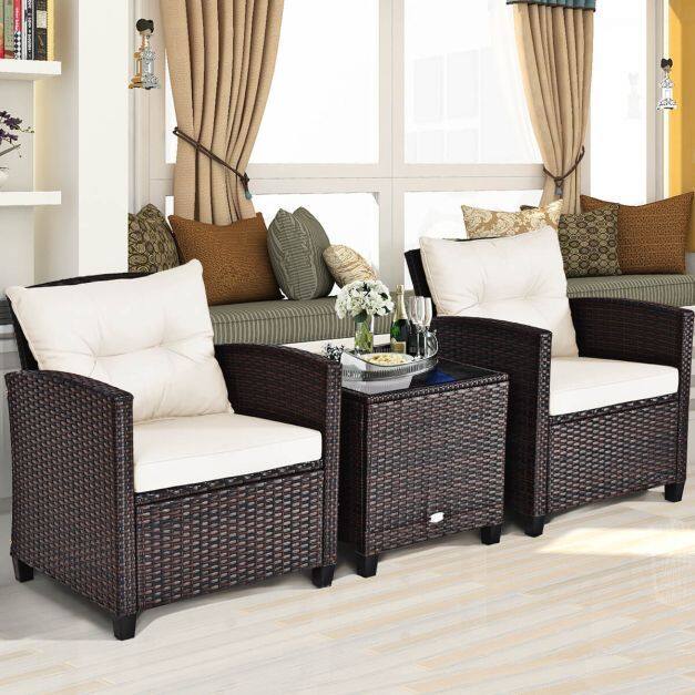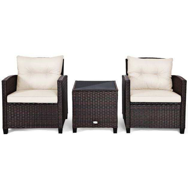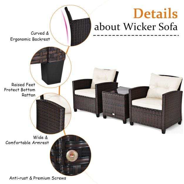 ● Sturdy Steel Frame and Premium Rattan: Constructed from a rust-resistant steel frame and PE rattan wicker, this 3pcs set is more durable and weather-resistant than traditional wicker models. Besides, the outstanding craftsmanship of the sofa set improves overall load-bearing.