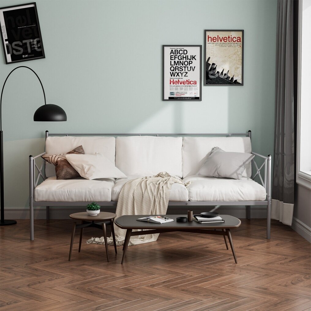 This daybed sofa bed is made of solid steel frame, which is durable and with 330 lbs max weight capacity.