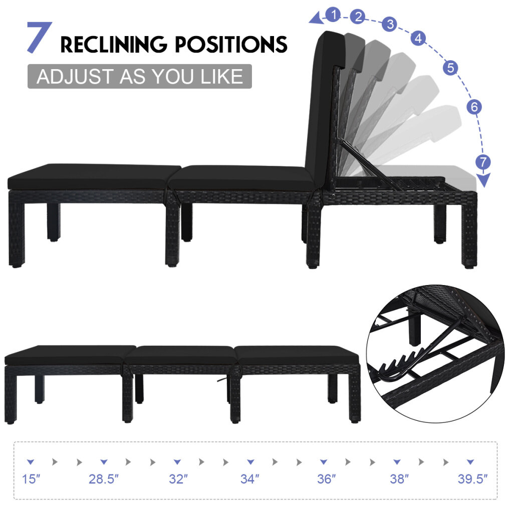 ● Carefully Selected Materials: Made of hand-woven black PE rattan and rust-resistant steel frame, this outdoor rattan chaise chair is sturdy and durable which can well stand for both test of time and outdoor life. With 8 solid legs, this chaise chair can offer additional support to make the recliner more stable.