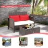 ● Designed for Outdoor Use: Featuring heavy-duty metal frame, both the loveseat and coffee table are of high stability and won't easily bend or rust. Furthermore, the metal frame is wrapped with hand-woven mix brown PE rattan, which is suitable for long-time outdoor use. And the anti-slip footpads protect the ground from scratches. Note: Please avoid rain exposure for prolonged service life.