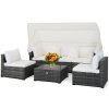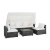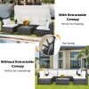 ● Retractable Canopy: Featuring a retractable canopy with premium gas springs, this outdoor patio furniture set allows you to open and close the canopy quietly and quickly while meeting various demands of outdoor activities. There are fixed ropes keeping the canopy in place. Therefore, this patio furniture set is perfect for reading with retractable canopy. And it is also perfect for sunbathing without canopy.
