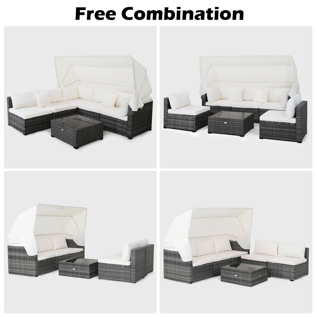 ● Free Combination: This 6-piece outdoor furniture set includes 1 coffee table, 2 corner sofas and 3-seat daybed sofa so that you can rearrange them according to your preference and available places, such as patio, backyard, poolside, garden and more, making a modern yet simple addition to your outdoor places. In order to assemble this furniture set correctly, please do not tighten all the screws until all the holes are aligned.