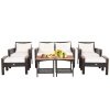 ● Acacia Wood Coffee Tables: The tabletop of the coffee table is made of solid acacia wood, which makes it support different items firmly. And this patio conversation set comes with 2 coffee tables. Both of them have extra storage shelves that increase more storage space to store blankets, towels, and other items you will need.