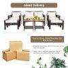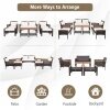 ● More Ways to Arrange: This 7-piece PE wicker patio furniture set includes 1 loveseat, 2 chairs, 2 ottomans, and 2 coffee tables that can be rearranged into various combinations, greatly matching the space of your patio, garden, poolside, and backyard.