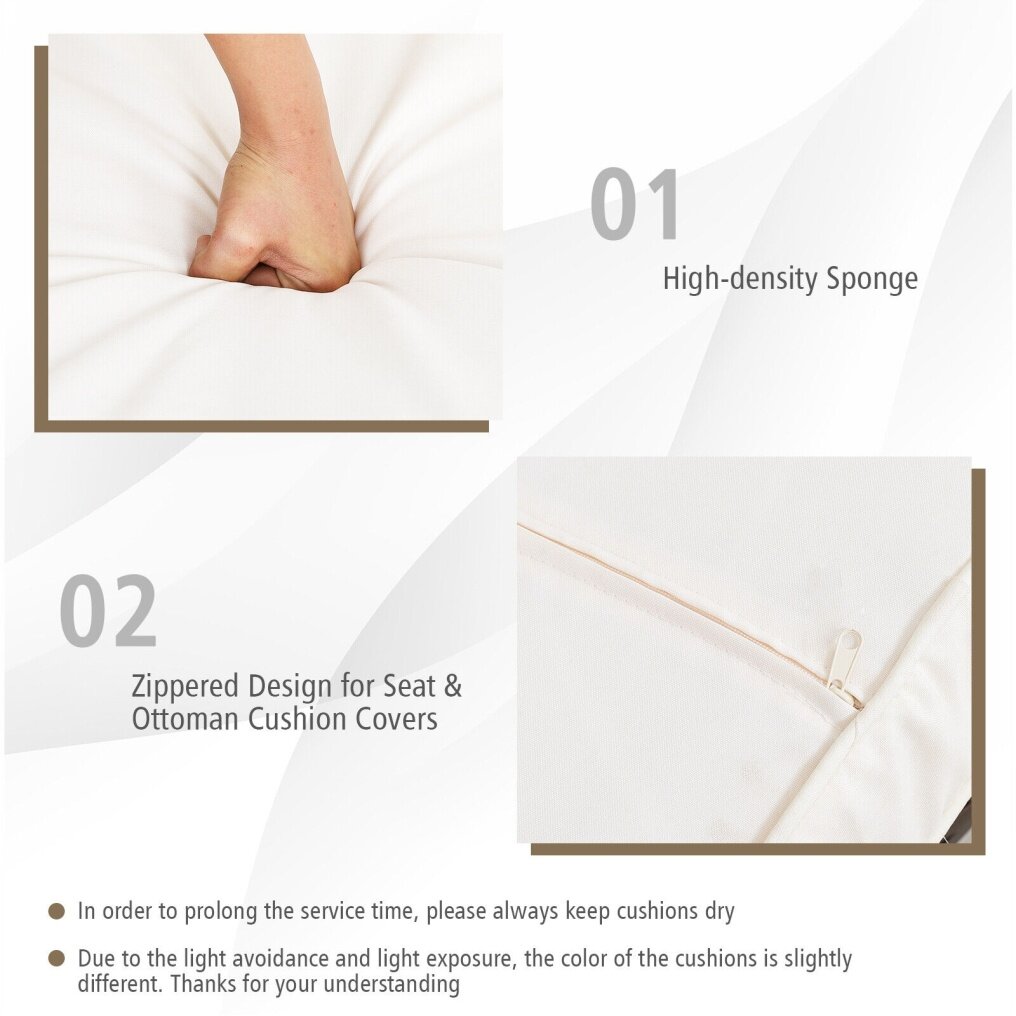 ● Tips about Cushions: To prolong the service time, please always keep cushions dry. Due to the light avoidance and light exposure, the color of the cushions is slightly different. Thanks for your understanding.