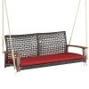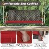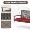 ● 2-Seat Hanging Swing Chair: Measuring 47" wide, the sitting area is spacious enough for 2 adults to sit. Thus, you can spend outdoor leisure time by swinging on this hanging chair with your best friend. The curved backrest and acacia wood armrests allows you to sit without tiredness even for a long time.