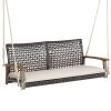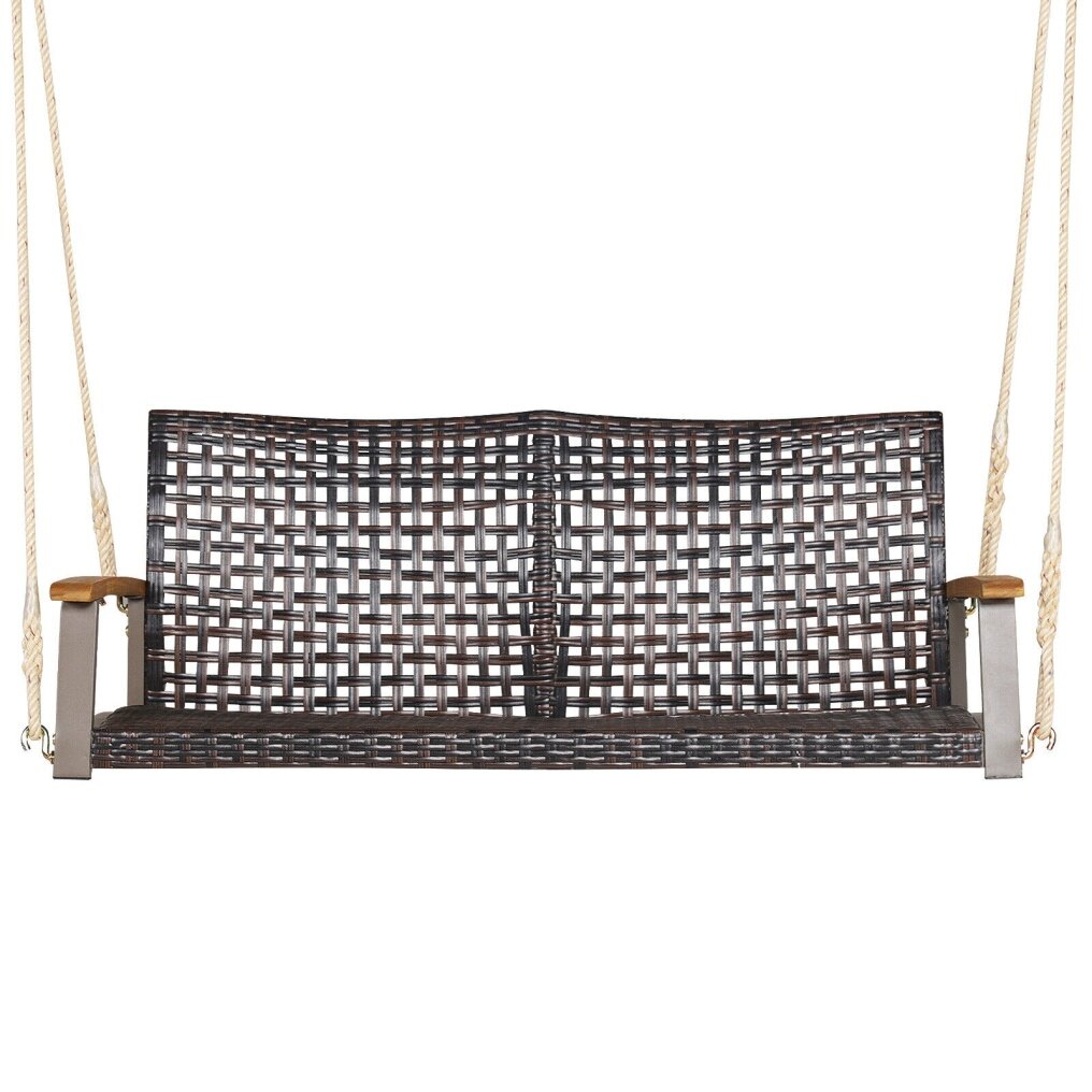● 2-Seat Hanging Swing Chair: Measuring 47" wide, the sitting area is spacious enough for 2 adults to sit. Thus, you can spend outdoor leisure time by swinging on this hanging chair with your best friend. The curved backrest and acacia wood armrests allows you to sit without tiredness even for a long time.