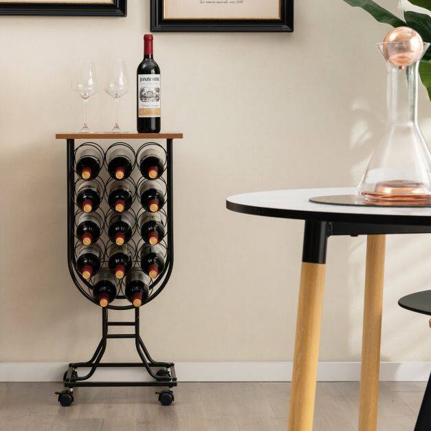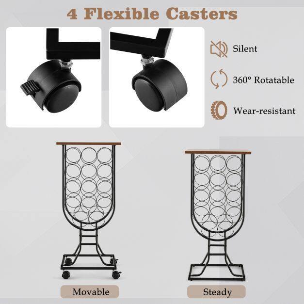 ● Easy Cleaning and Product Size: The waterproof top surface can be easily wiped clean with a soft cloth. The wine rack with wheels measures 15" x 12" x 32.5"(L x W x H), while the wine rack without wheels is 15" x 12" x 30"(L x W x H).