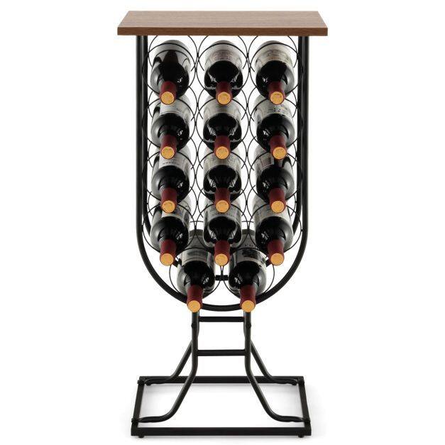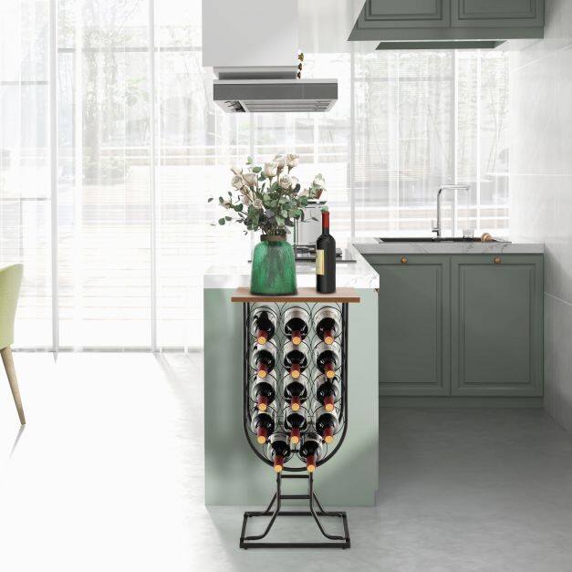 ● Ample Wine Storage Space: This wine rack features a wooden top to place or display glasses or decanters. The 15"(L) x 12"(W) top is also a perfect place for you to pour out drinks and enjoy with your families or friends. Besides, the whole wine rack can hold 14 bottles of your wine collection.