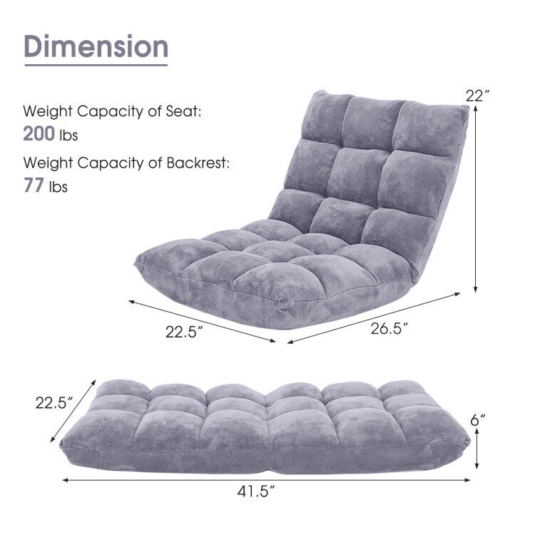 ● Adjustable Floor Chair for Personalized Support: The floor chair features a 14-position adjustable backrest (90°–180°), allowing you to easily switch between sitting upright, reclining, or lying flat. Filled with high-density sponge and memory foam, it offers lasting comfort and reliable back support for extended use.