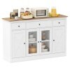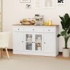 Large Storage Space: This 140 cm buffet sideboard features 3 drawers and 3 cabinets, including a large central cabinet with see-through doors for displaying your tableware. The spacious cabinet top is perfect for kitchen appliances, and works as an extra prep space.