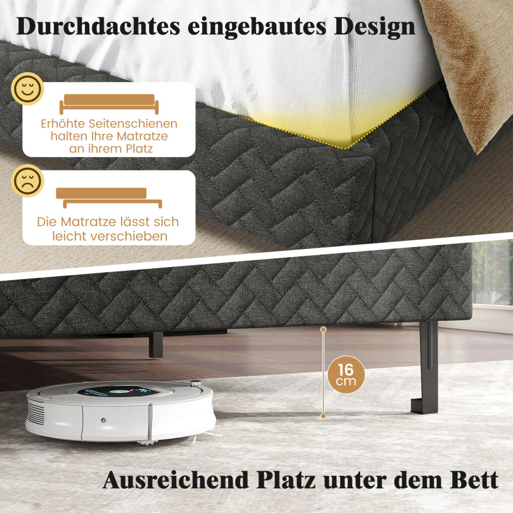 Ample space under the bed: The generous 16 cm height of the under-bed storage provides enough room for a vacuum cleaner to easily reach underneath. This practical feature makes cleaning easier and helps keep your bedroom tidy.