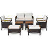 ● Durable Rattan and Acacia Wood: All the 7-pieces are wrapped with high-grade mix brown PE rattan, which is not only well-woven and elegant but also durable and not easy to fade. Besides, the armrests and tabletops are made of selected acacia wood, which is solid and abrasion resistant.