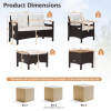● Different Combing Ways: This patio rattan set includes 1 loveseat, 2 single sofas, 2 ottomans and 2 coffee tables. You can freely arrange the 7 pieces in varied ways, thus suiting well to different sizes of areas. The 7-piece patio set is ideal for multiple occasions, such as poolside, backyard and garden. Note: It's recommended to cover (not included) the patio sets or put them away when raining or not using