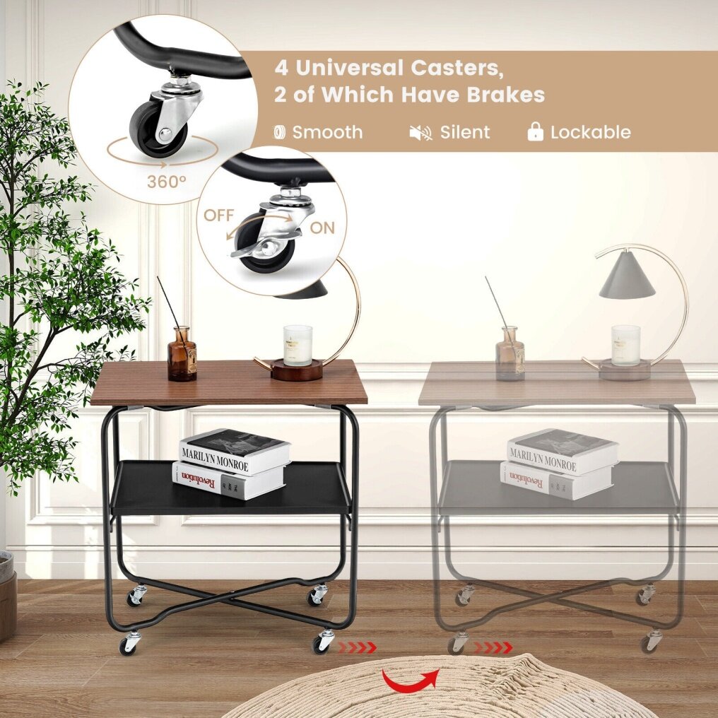 ● Additional Storage for Home: Equipped with a flat top and a metal lower shelf, this rolling side table provides additional storage for your ornaments, daily necessities, magazines, or other odds and ends. It will be a functional addition to small spaces.