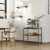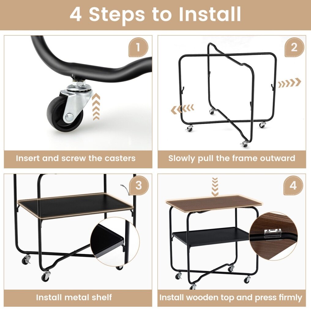 ● Assembly without Difficulty: The entire assembly requires no screws. You just need to assemble the wheels, and then install the two shelves by aligning the grooves. When not in use, the foldable frame also enables you to easily disassemble and store the cart without taking up too much space.