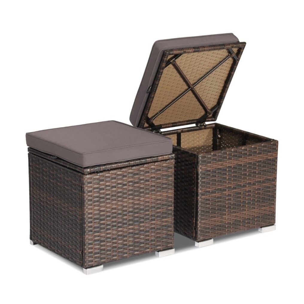 ● 4-in-1 Versatile Ottomans: This rattan ottoman not only provides a perfect place for you to relax your feet, but also can be used as an additional seat for the rattan sofa set. Also, the top lid can be flipped for storage. When the cushion is removed, the ottoman turns into a functional side table.