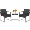 ● Compact in Size: This 3-piece patio conversation set contains 1 table (18"L x 18"W x 19"H) and 2 armchairs (23"L x 21"W x 32"H), which will transform your limited places (porch and balcony) into a cozy and leisure zone for outdoor relaxation and enjoyment. Please refer to the size instructions before purchasing to avoid unnecessary trouble.