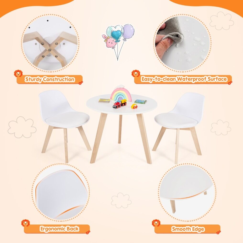 ● Sturdy and Stable Structure: The activity table set with ASTM and CPSIA certification is constructed with selected engineered wood. The legs are made of beech wood, which is strong and durable. And each chair has a soft cushion to provide a comfortable sitting experience. Both the chair and table can bear a weight limit up to 176 lbs.