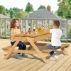 This 3 in 1 kids picnic table is ready to offer your kids a cute and funny place to spend their happy childhood.