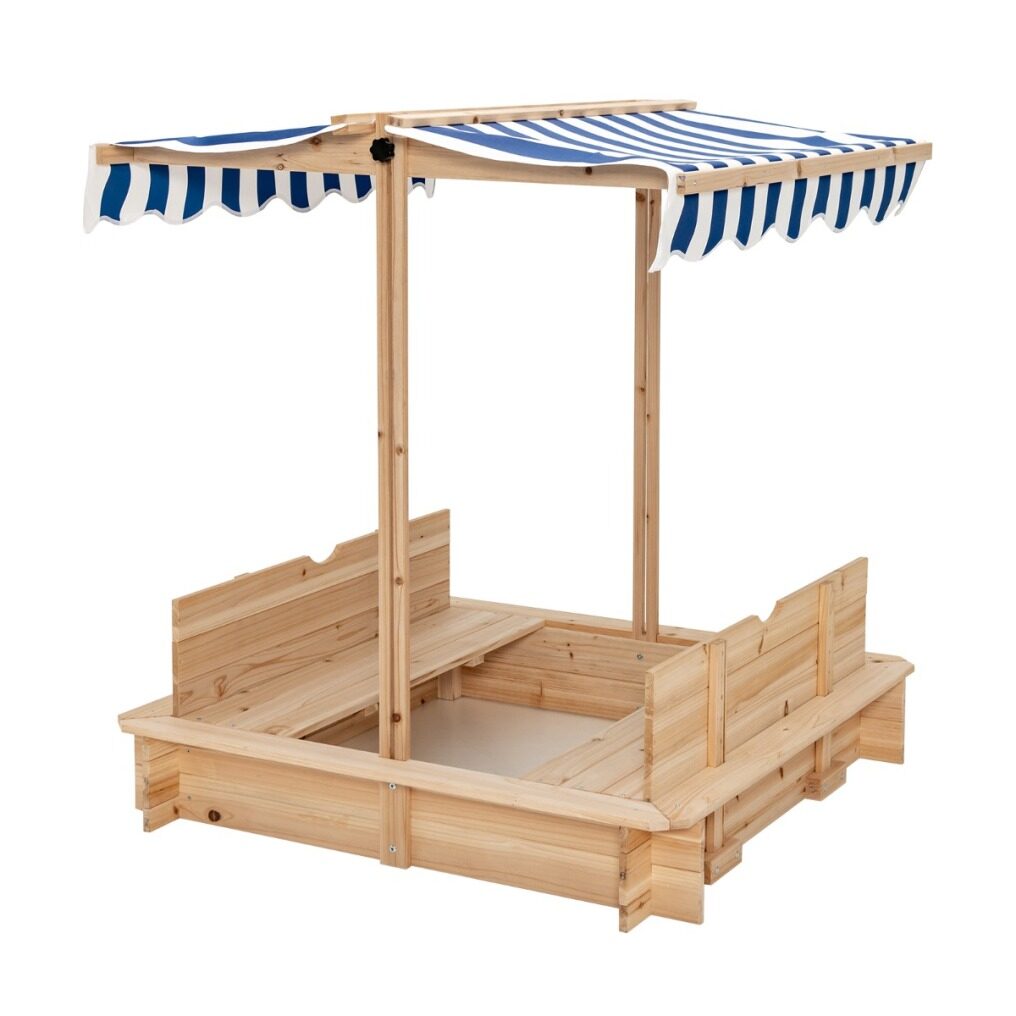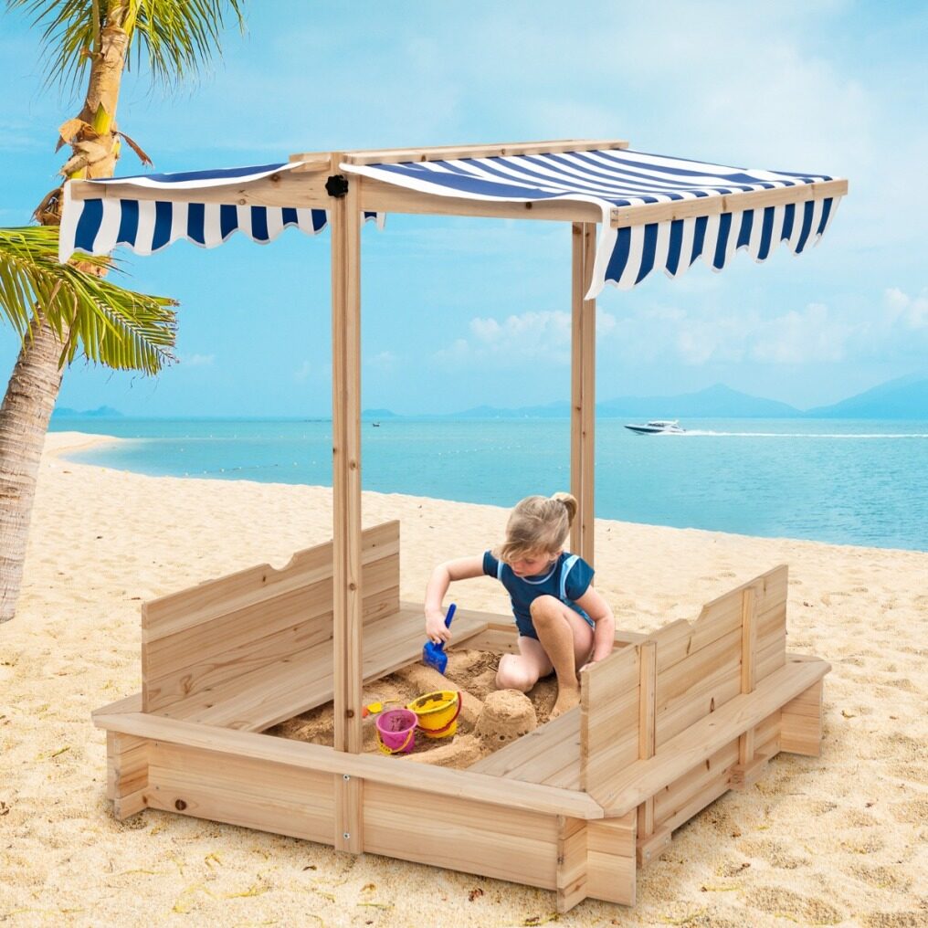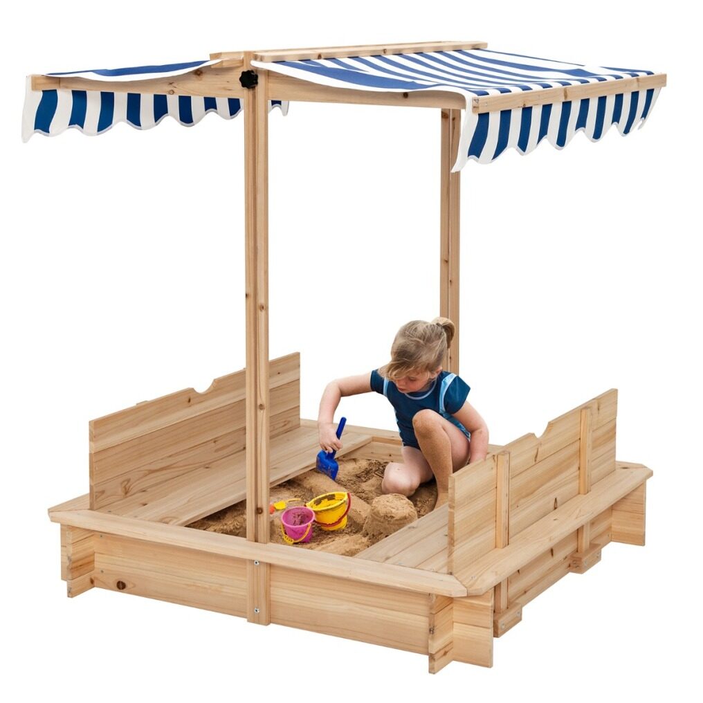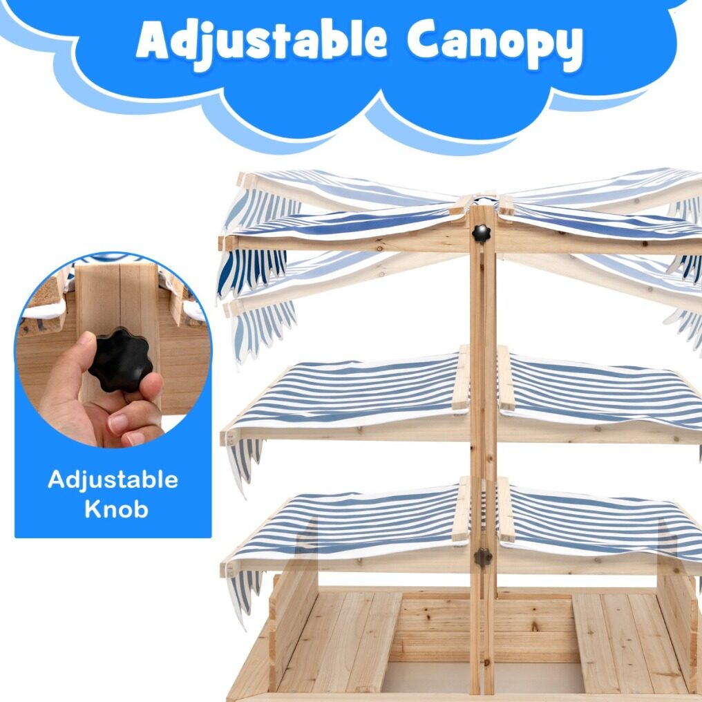 Designed with Adjustable Canopy: With the premium canopy, the sandbox can prevent drizzles and strong sunlight, creating a cool and comfortable area for kids to play with their friends. It guarantees great water resistance, sun resistance, and fade resistance. Besides, the canopy's height can be adjusted from 24 cm to 121 cm by rotating the adjustable knob.