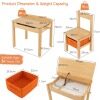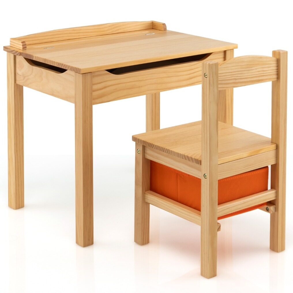 This flip top desk and chair set is a wonderful gift for your growing child! The desktop is easy to flip up and down due to the safety hinges and humanized cut-out handle. And there is a large storage space under the desktop to store kids' items, such as storybooks, notebooks, papers, small toys, etc. The embedded pen slot and side backpack hook are designed to reduce clutter and keep the studying area neat and tidy. Moreover, the chair comes with a built-in storage box for kids to organize their items. Made of selected solid wood and MDF, this toddler desk and chair set is durable and stable. The desk can hold up to 66 lbs and the chair 69.8kg. Moreover, the round corners and smooth edges can effectively protect kids from accidental bumps or scratches.