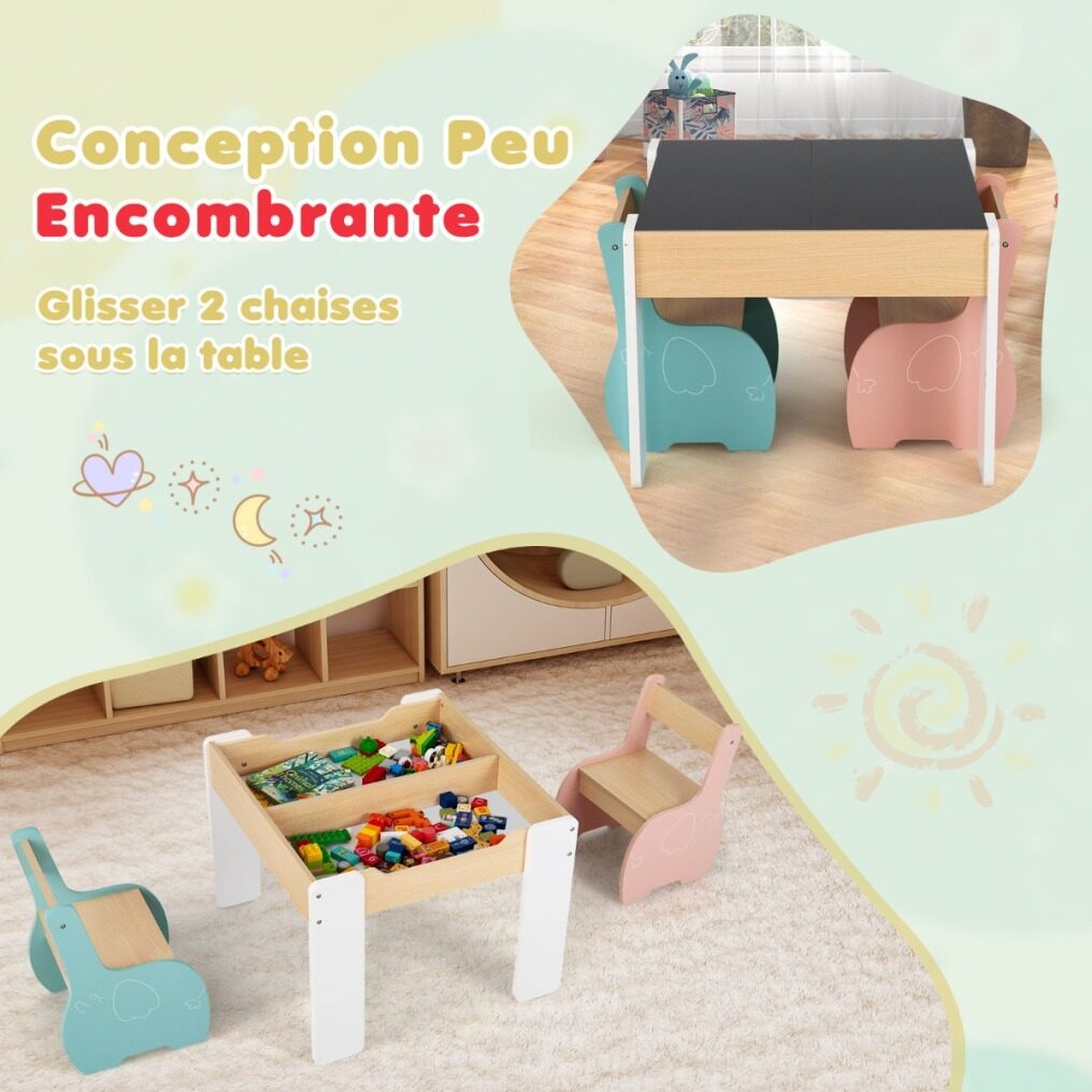 Our 3-in-1 table and chair set is an ideal learning partner for children aged 3 to 6!