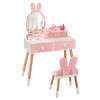 ● Sturdy and Durable Construction: The kids vanity table and chair set is made of high quality MDF and natural beech wood, which is harmless to children and durable for long time use. Moreover, the beech wood legs are equipped with non-slip foot pads, which adds additional stability during use.