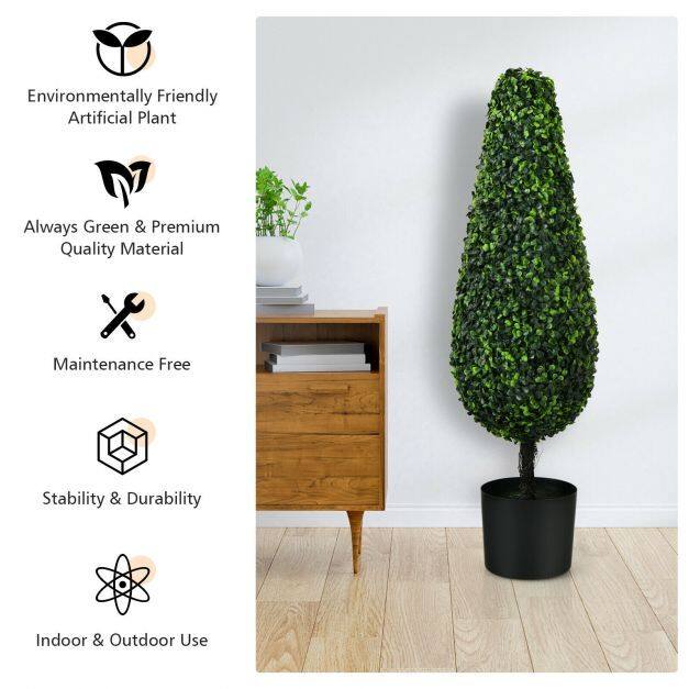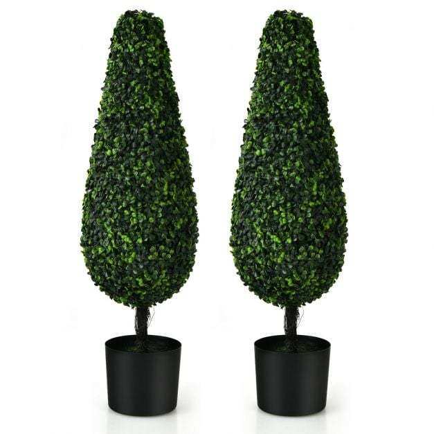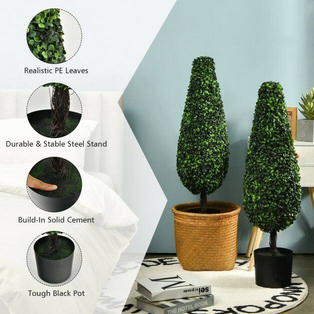 ● Realistic and Natural Appearance: Covered with lifelike green leaves, crafted from high-density PE material, this 2-pack realistic artificial topiary trees will reinvigorate the landscape of your lawn or garden and bring a fresh look to your indoor decor, whether up close or at a distance.