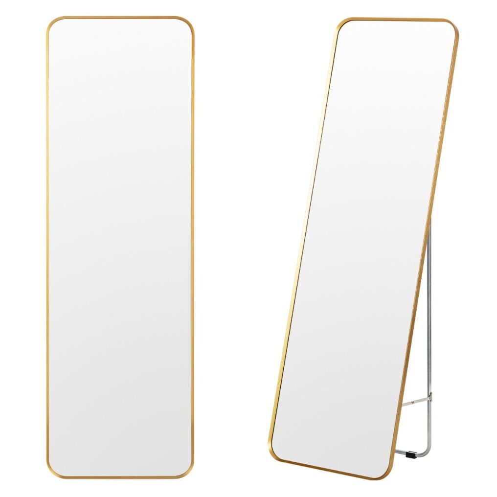 Gold Narrow Bezel Design: Featuring simple but elegant design, this free-standing mirror equips gold and narrow bezel, which makes it an eye-catching decoration in your room. The free-standing mirror is suitable for various places, such as the living room, bedroom, locker room, hallway and more.