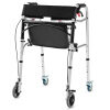 ● Strong Frame and Premium Material: Constructed robust aluminum alloy frame, this folding walker is sturdy enough to holds up to 350 lbs. Moreover, there are widened and reinforced front bar to enhance overall stability. Besides, the seat cushion is made of smooth, comfortable, skin-friendly PVC leather, which is easy to maintain with wet cloth.