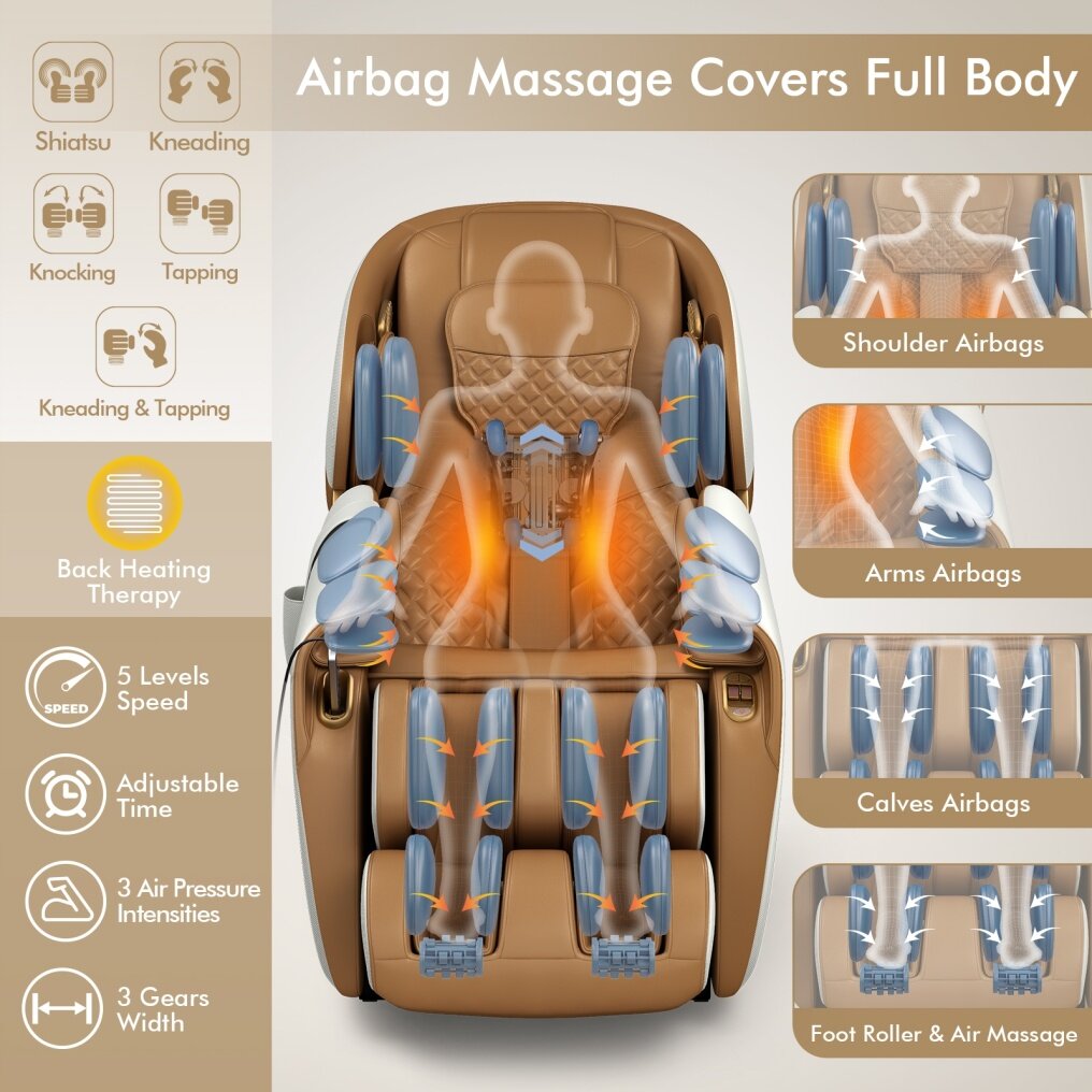 - Full body air massage, back far infrared heat therapy, and foot rollers to relieve fatigue