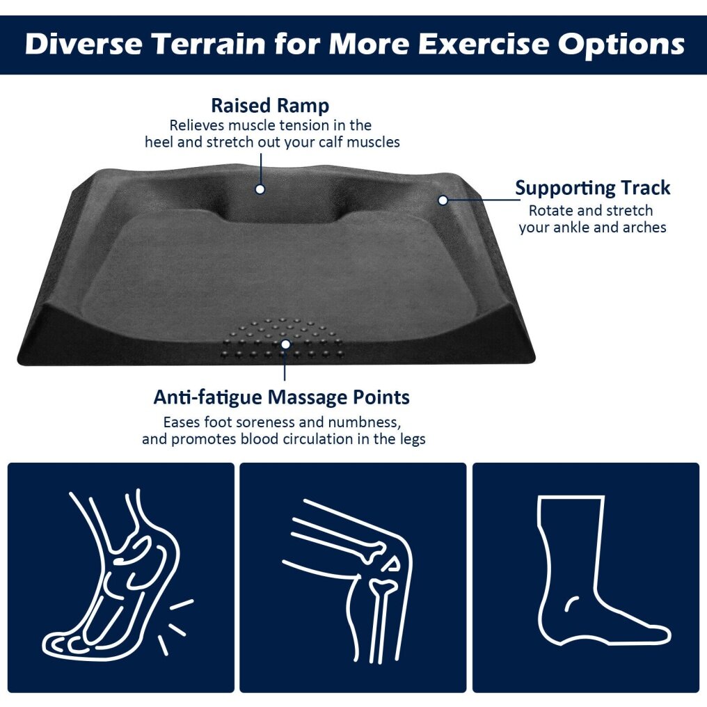 This standing desk mat with diverse terrain can keep you moving when standing, burning calories, relax muscles, promote blood circulation and reduce fatigue caused by long time standing. In addition, the massage points allows you to enjoy comfortable massage while standing. Made of premium PU material, this cushioned floor mat offers ergonomic support while the waterproof surface is easy to clean. Moreover, the anti-skid base adds additional safety and avoids accidents when using. Except offices, this standing mat is suitable for home, kitchen and other places.