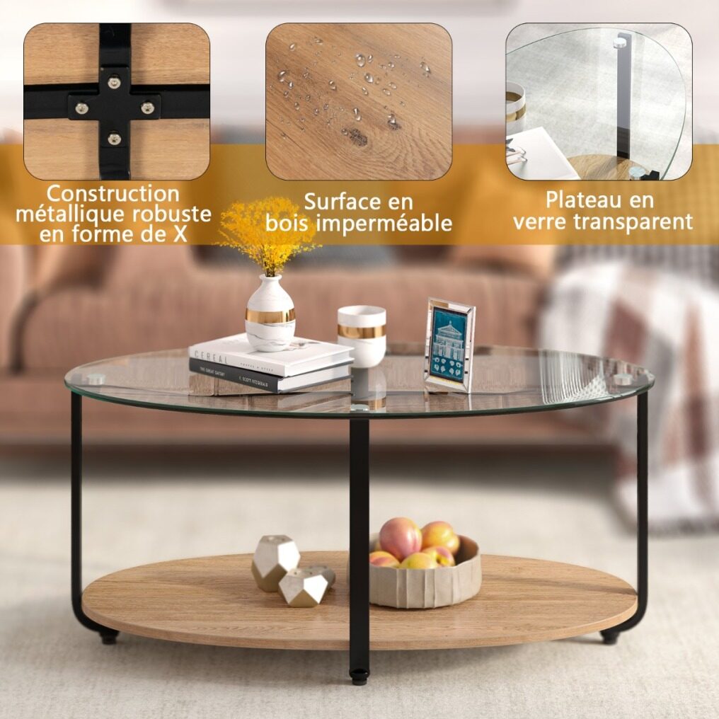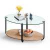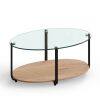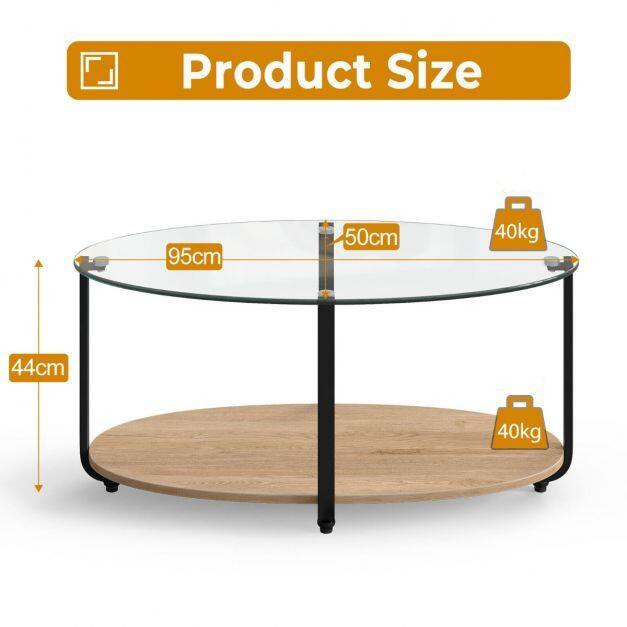 2-Tier Design with Ample Storage Space: This coffee table has 2 large tiers, offering ample space for you to display and store. The large tempered glass tabletop provides a conspicuous place to put in handy things and display beautiful ornaments. And the bottom open wooden shelf allows you to store kinds of stuff orderly with easy access.