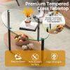 The tempered glass tabletop showcases the elegant charm