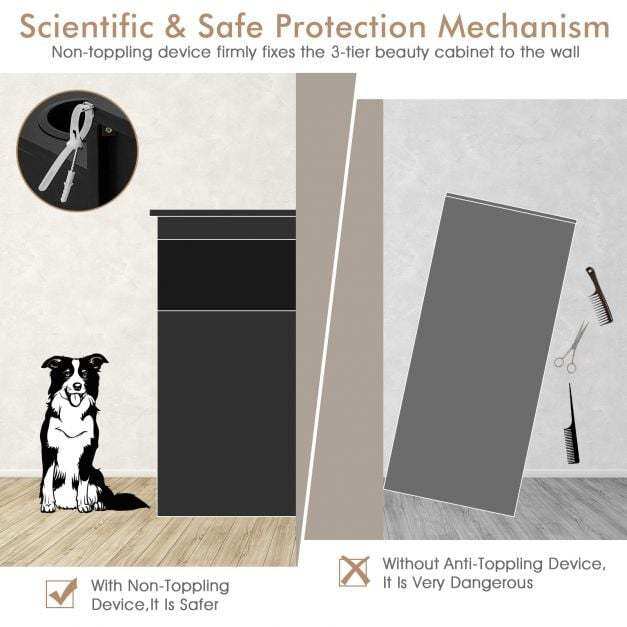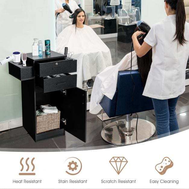 ● Sturdy and Durable Material: As the entire construction is made of premium particle board and MDF with excellent sturdiness, the salon station performs outstanding stability and scratch resistance. Plus, it also comes with a non-toppling device for higher security. Undoubtedly, the salon station can accompany you for a long time.