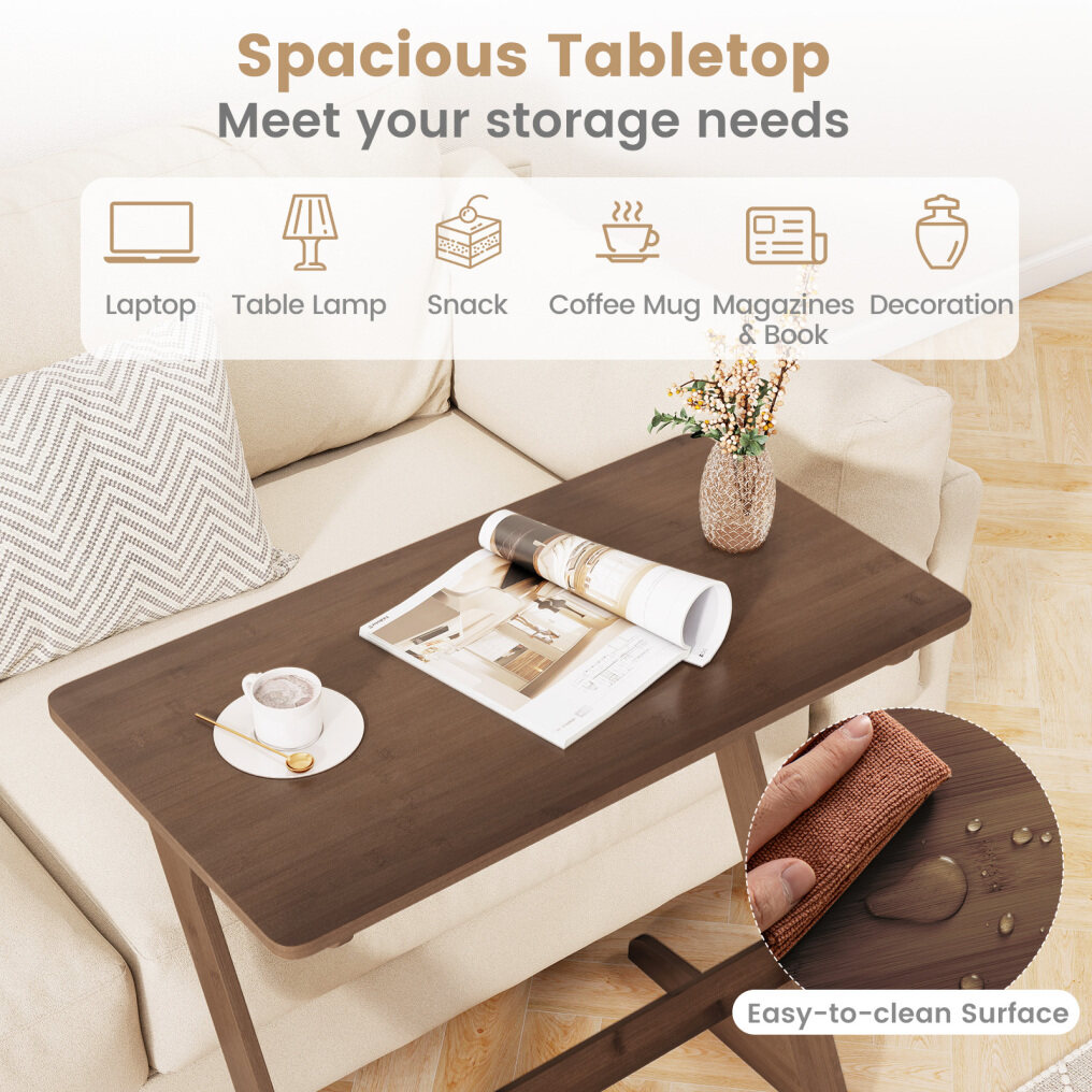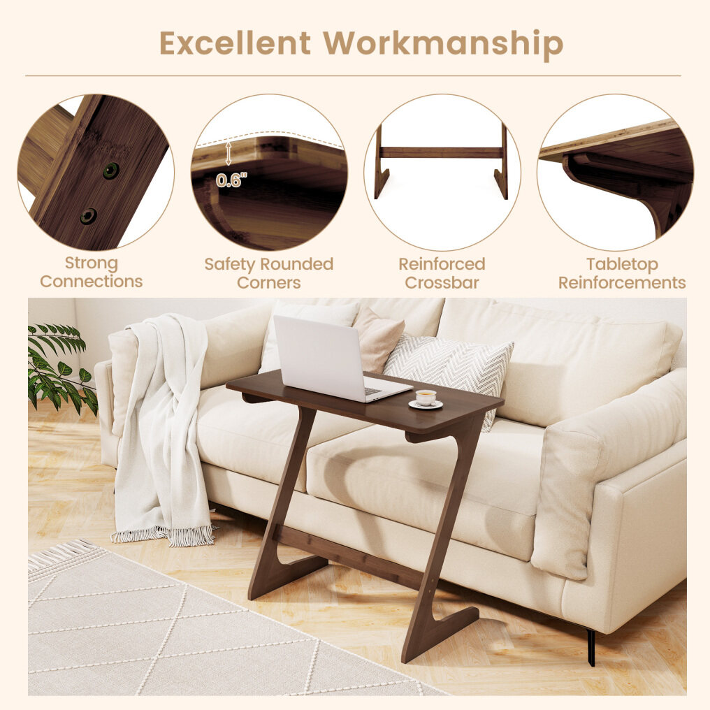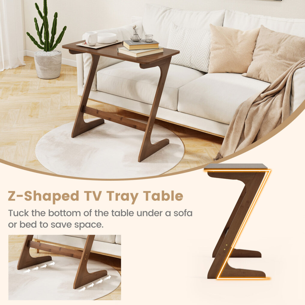 Bamboo Z-Shaped Spacious Sofa Side Table with Space-Saving Tabletop-Coffee