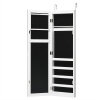 Wall Mounted & Door Hanging: This jewelry cabinet saves a lot of space compared to heavy freestanding cabinets. It can be hung on the wall with the screws or hung over a door with the hooks provided, so that you could both store the jewelry and keep the cabinet out of the way. It also comes with a double-sided tape to hold it in place when the door opens and closes.