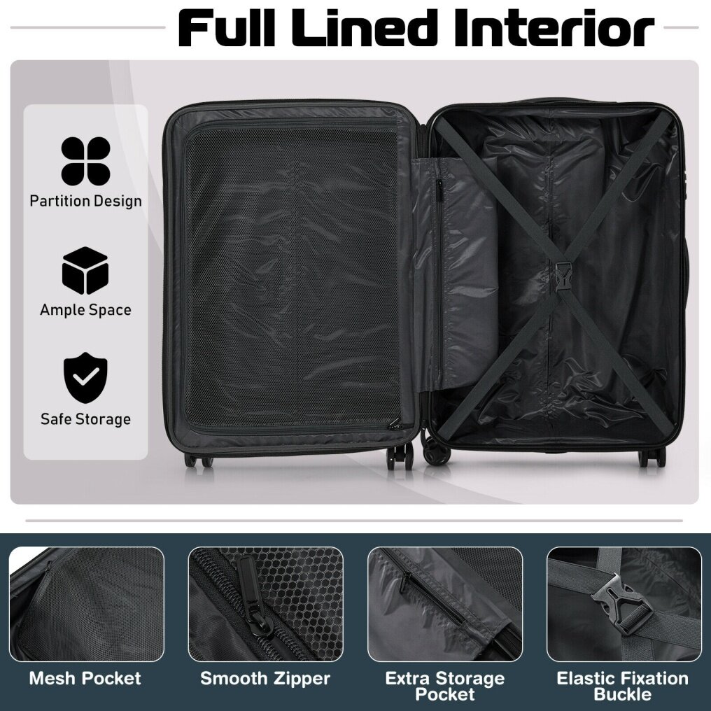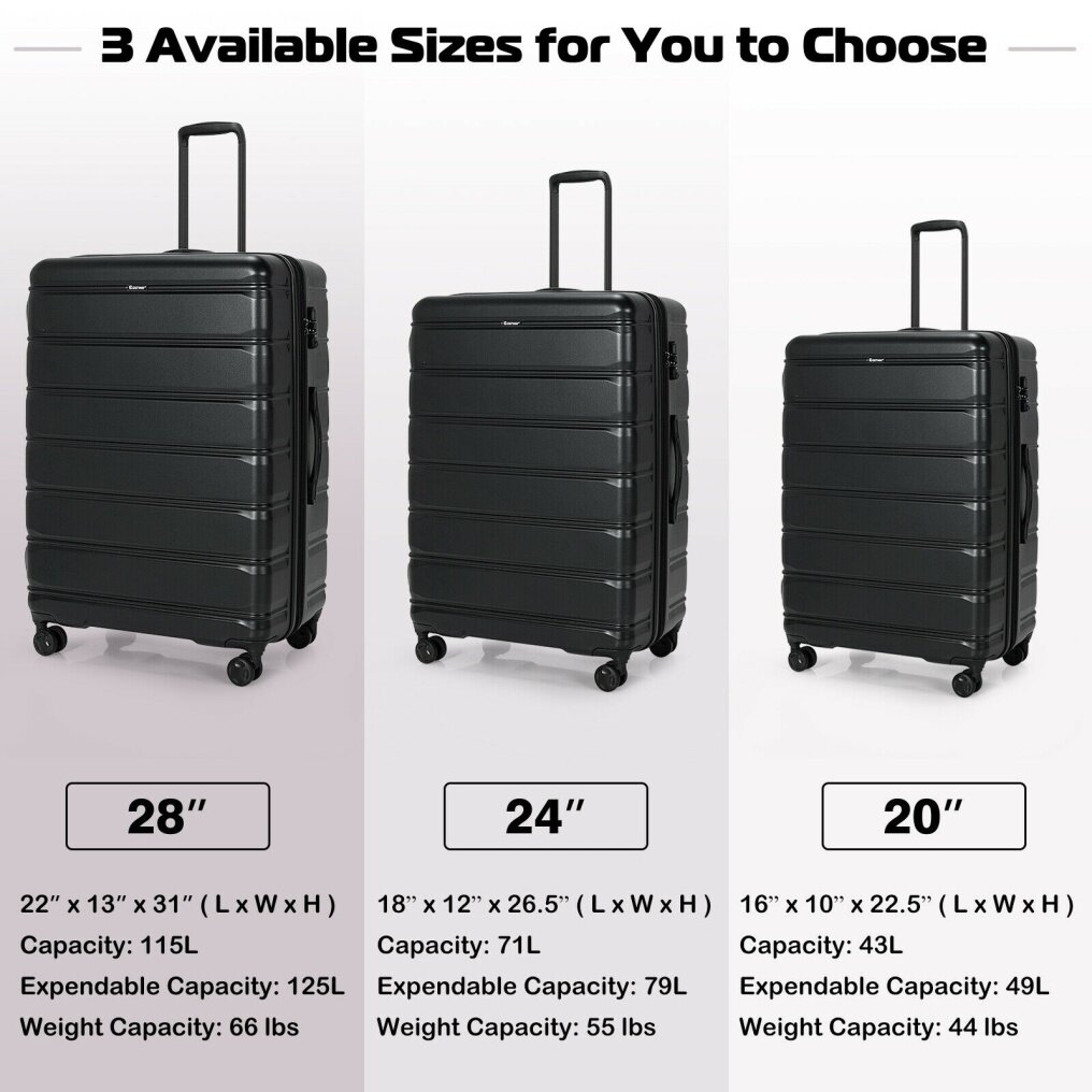 - Suitcases of 3 sizes (20", 24", 28") meet different travelling needs
