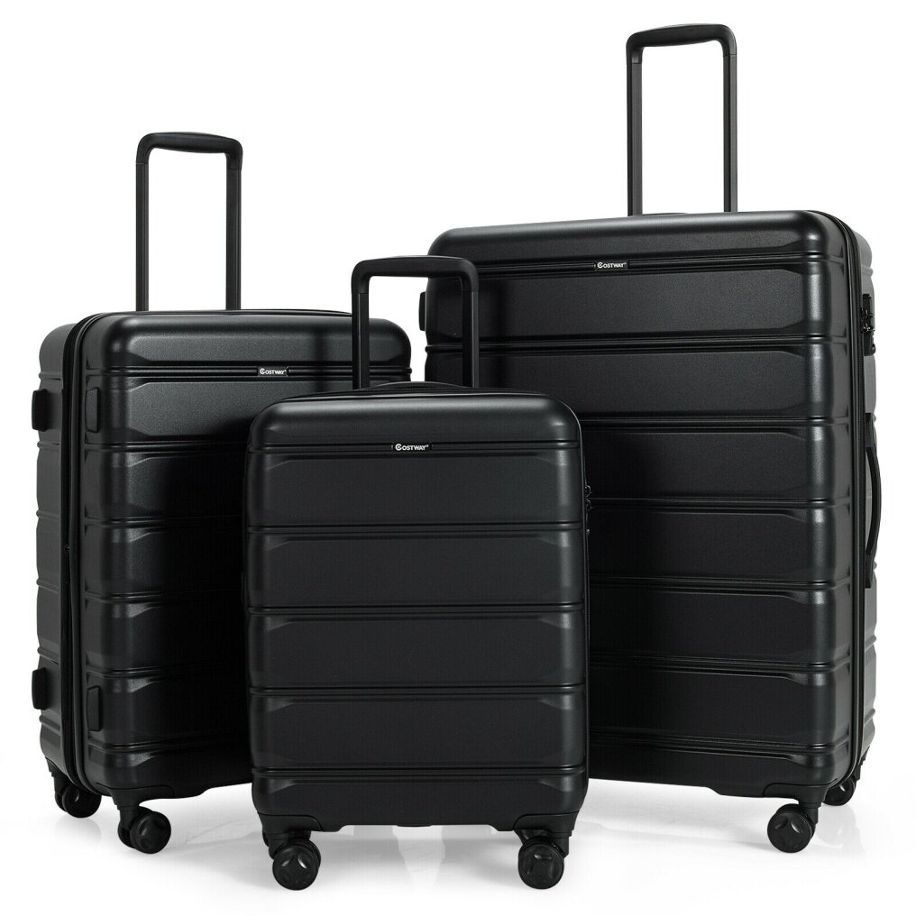 This set includes 20", 24" and 28" suitcase, which can be used on various occasions. The 20" trunk is suitable for quick trips, and the other two work well in longer journeys. The TSA lock enables TSA agents to check your luggage without causing damage. And the zippers are double-layer, thus stronger and ensuring safe use. In addition, it is necessary to easily move the suitcase when traveling. With the retractable telescoping handles and universal wheels, you can definitely make it. Moreover, the fully lined interior arranges your items in good order with its zippered mesh compartment and straps. Besides, the suitcases are expandable to enlarge space. The last but not least, the PC shell and metal handle are durable and reliable, ensuring long service life.
