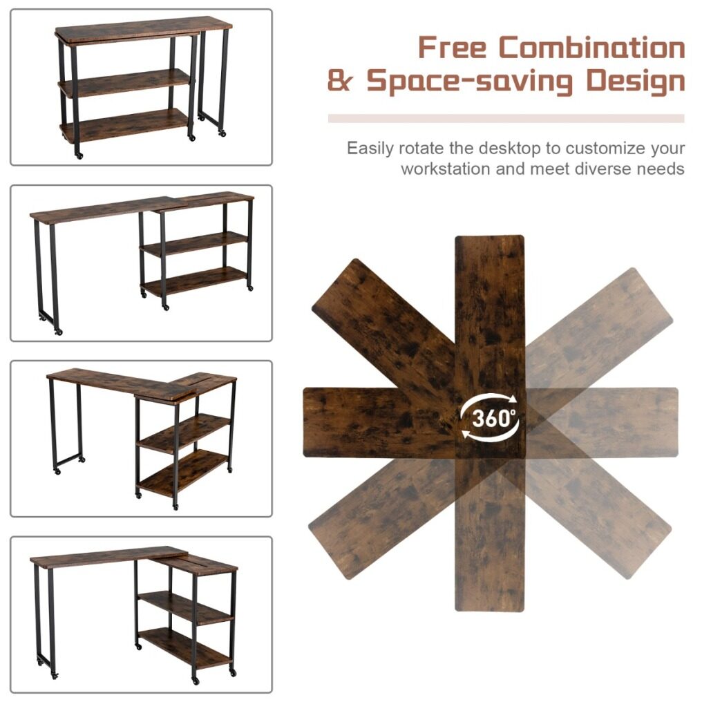 360° Free Rotating Design: The sofa table has a 360° free rotating function, allowing you to change into different shapes to customize your workstation. It can be used as a bookshelf at 0°, an entry table at 180°, or an office desk or more at other angles, thus meeting your various requirements.