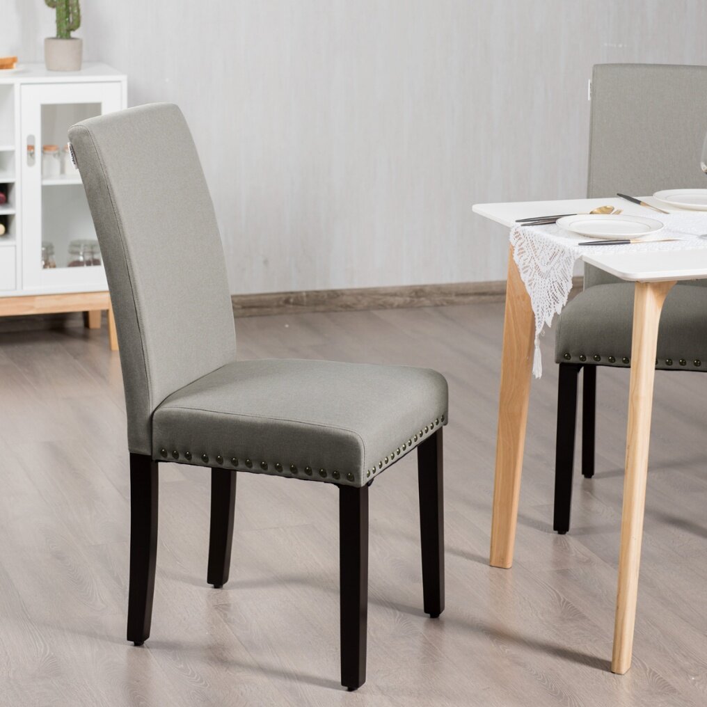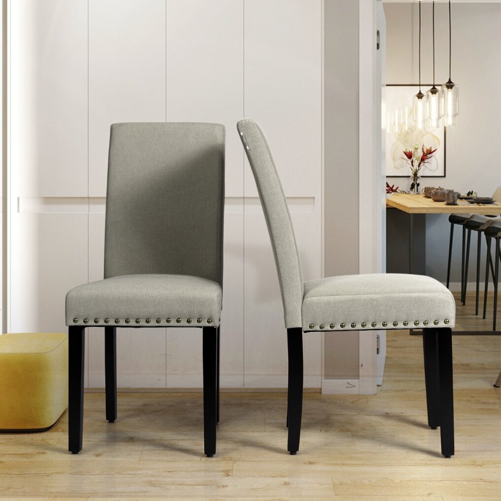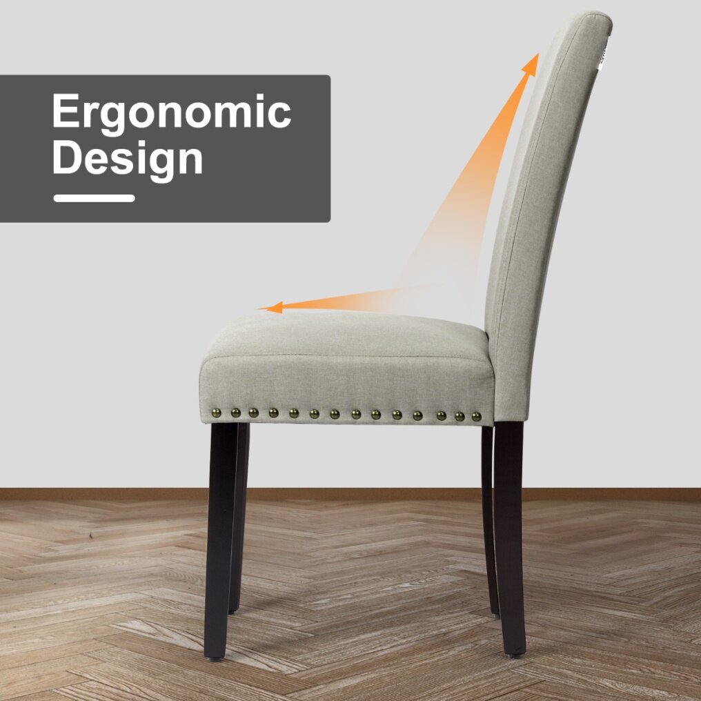 High-Density Sponge & Linen Fabric: These 2 dining chairs are filled with a high-density sponge to offer optimal softness and elasticity. And serpentine springs under the seat make chairs more resilient. Besides, covered with breathable linen fabric, these dining chairs will provide maximum comfort.